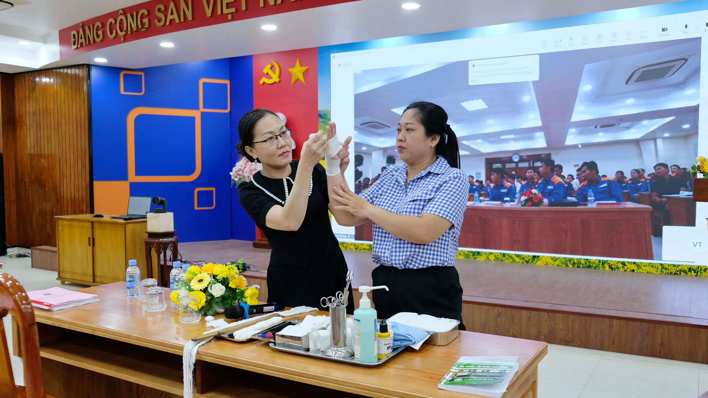Đồng thời, lớp tập huấn cũng tập trung vào nhiều nội dung chuyên ngành, cụ thể theo tính chất công việc, vị trí làm việc và nhóm đối tượng khác nhau, như: Kỹ thuật an toàn vệ sinh lao động, an toàn PCCC ở văn phòng, kho xăng dầu, cửa hàng xăng dầu, cửa hàng gas; Trong các khâu vận chuyển, tồn chứa, xuất - nhập xăng dầu, gas; Kỹ thuật an toàn điện; Biện pháp xử lý sự cố, sơ cứu tai nạn lao động,vv… Giảng viên hướng dẫn trực tiếp gồm cán bộ chuyên môn của Công ty và cán bộ của Trung tâm Kiểm soát bệnh tật tỉnh Đồng Tháp. Giáo trình, bài giảng và bộ câu hỏi kiểm tra được biên soạn theo khung chuẩn của Tập đoàn Xăng dầu Việt Nam, phù hợp với đặc thù công việc và từng nhóm đối tượng của Công ty.